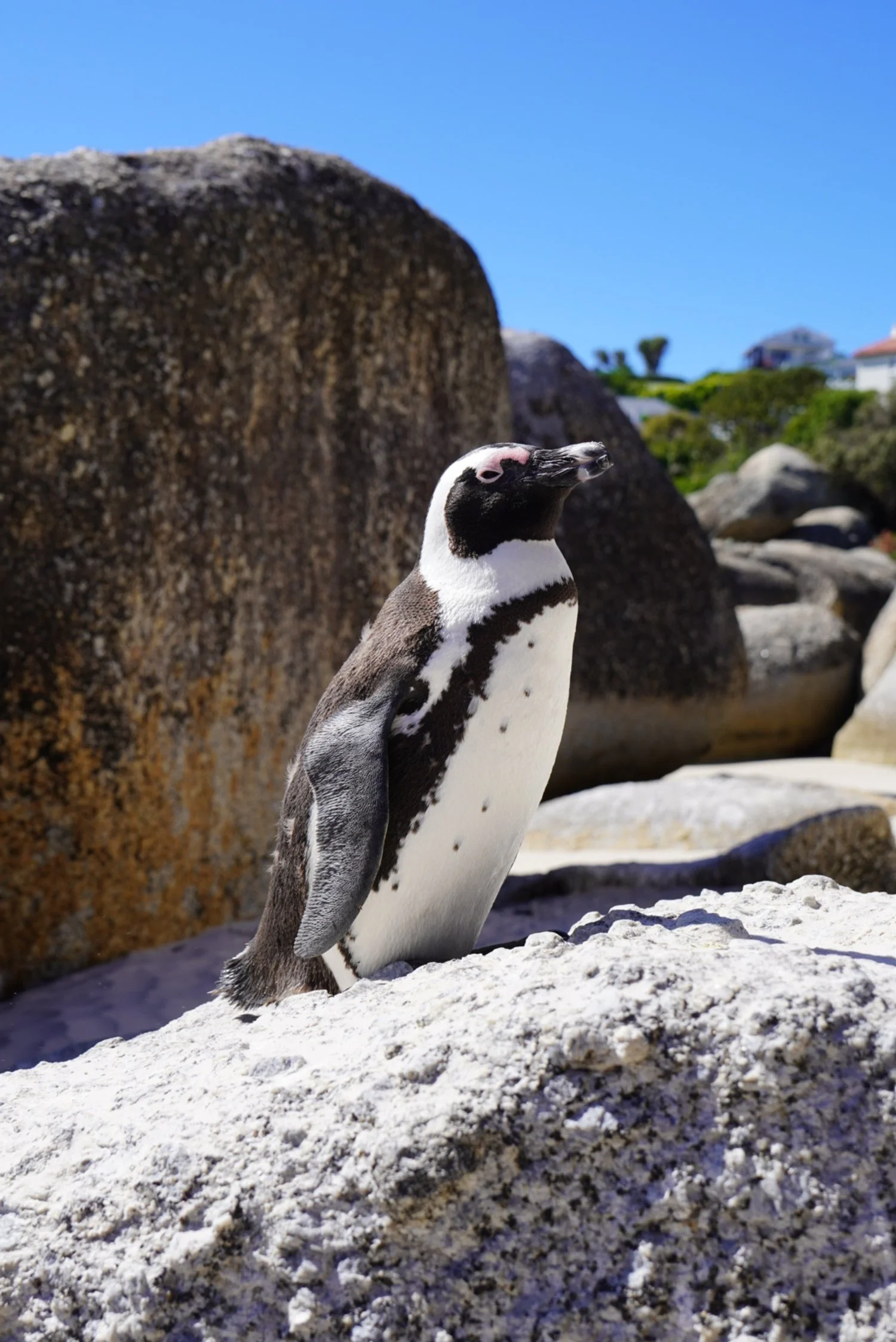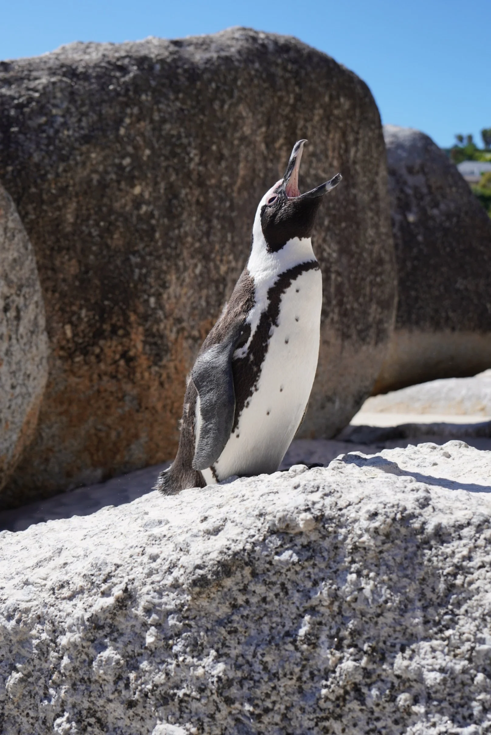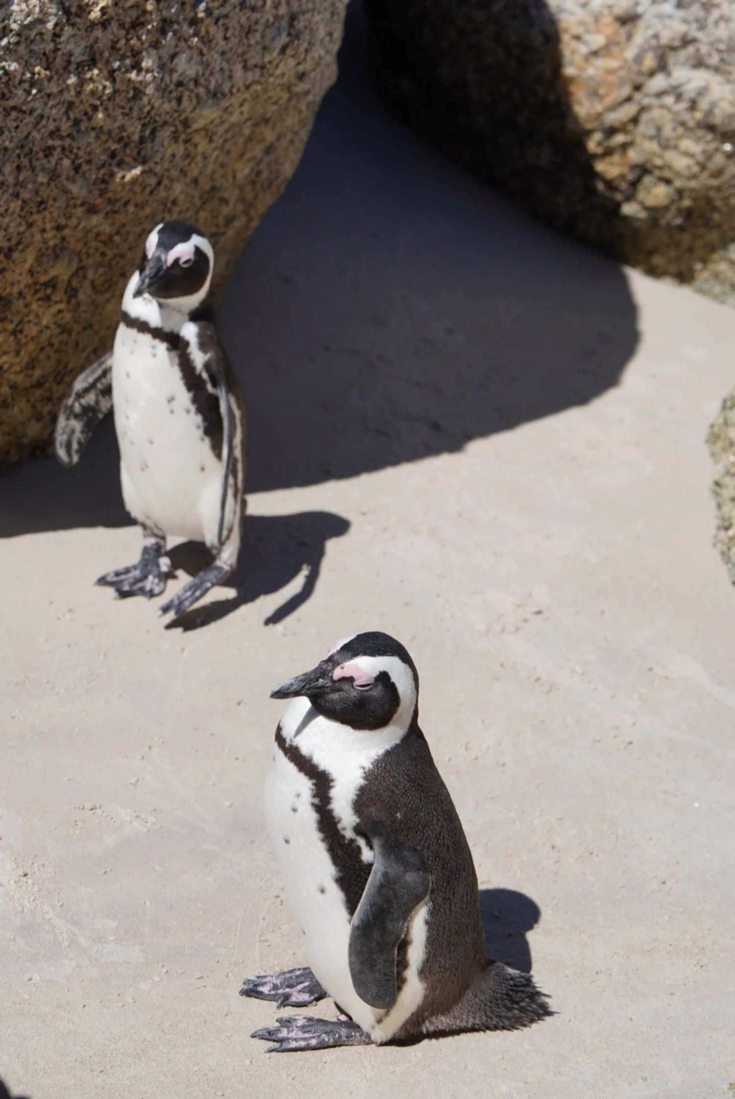 We arrived at the entrance for Boulder’s Beach, paid our National Park fee and then it was off to the races to see if we could find the cutest animals this beach is famous for - African penguins! I know what you’re thinking… wait there is penguins in Africa? Yes, Boulders Beach is home to a unique and endangered land-based colony of African Penguins.