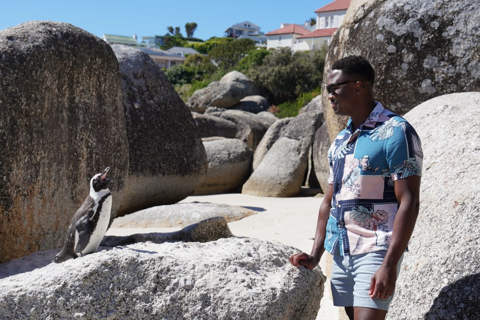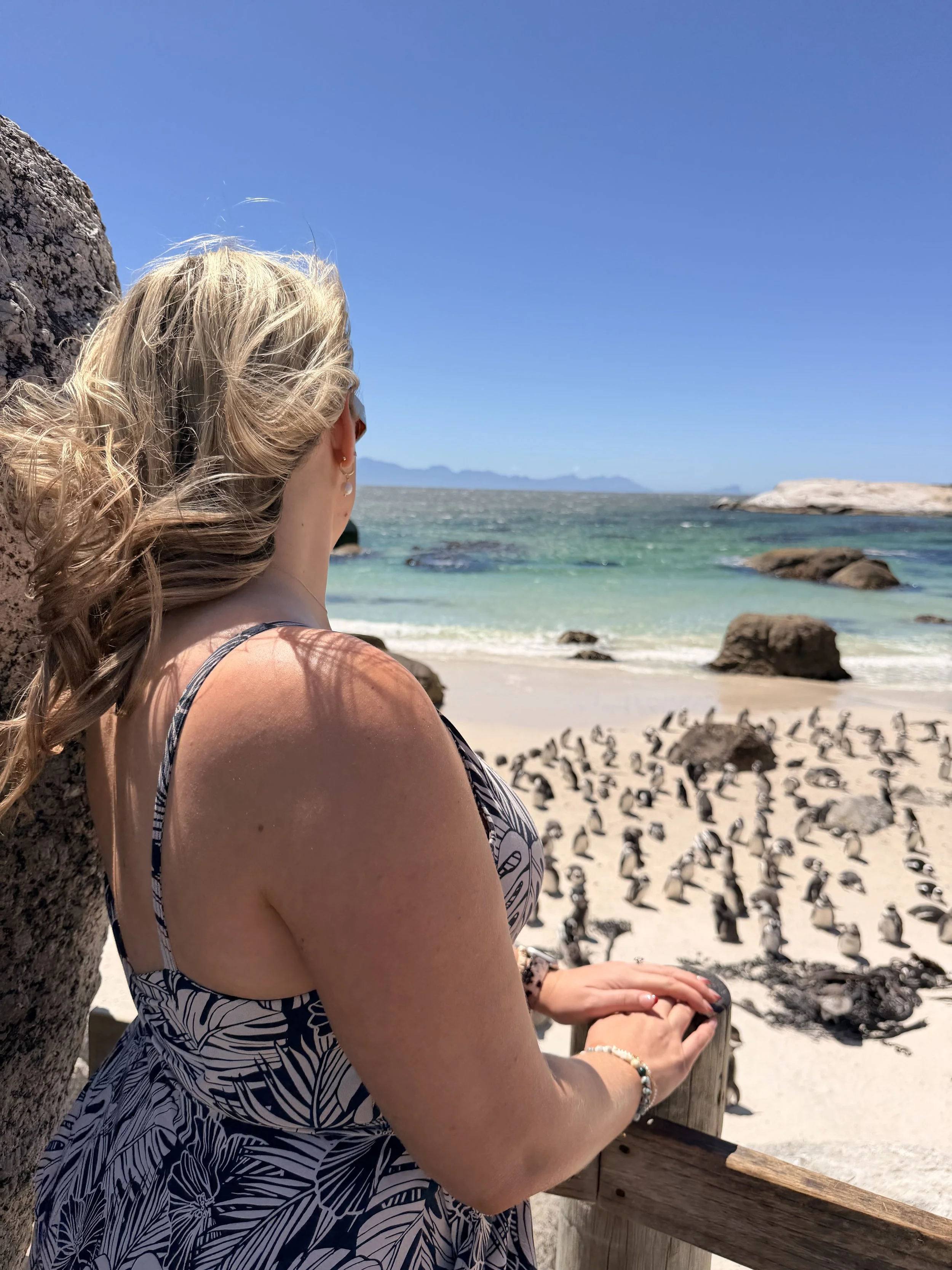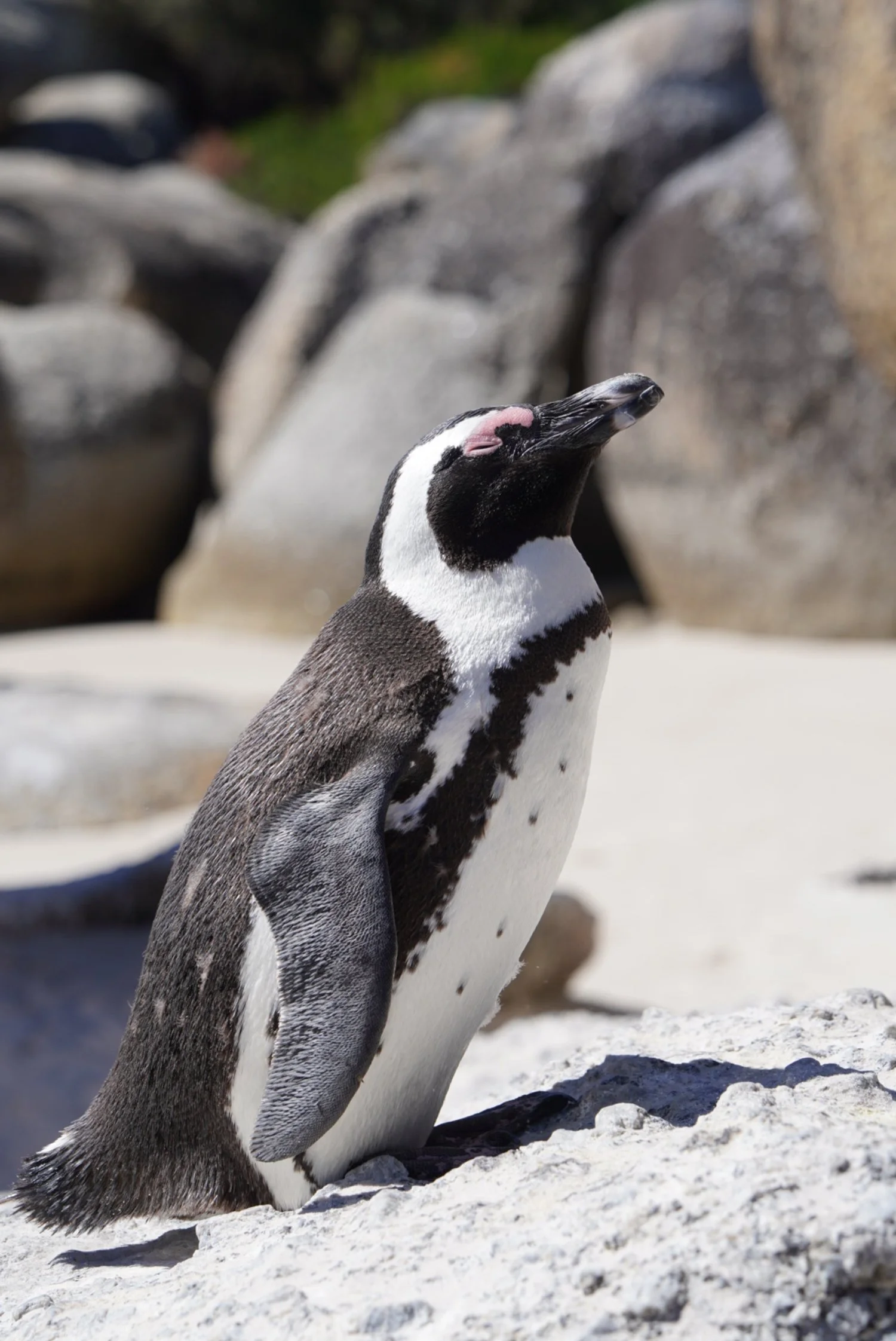 We arrived at the entrance for Boulder’s Beach, paid our National Park fee and then it was off to the races to see if we could find the cutest animals this beach is famous for - African penguins! I know what you’re thinking… wait there is penguins in Africa? Yes, Boulders Beach is home to a unique and endangered land-based colony of African Penguins.