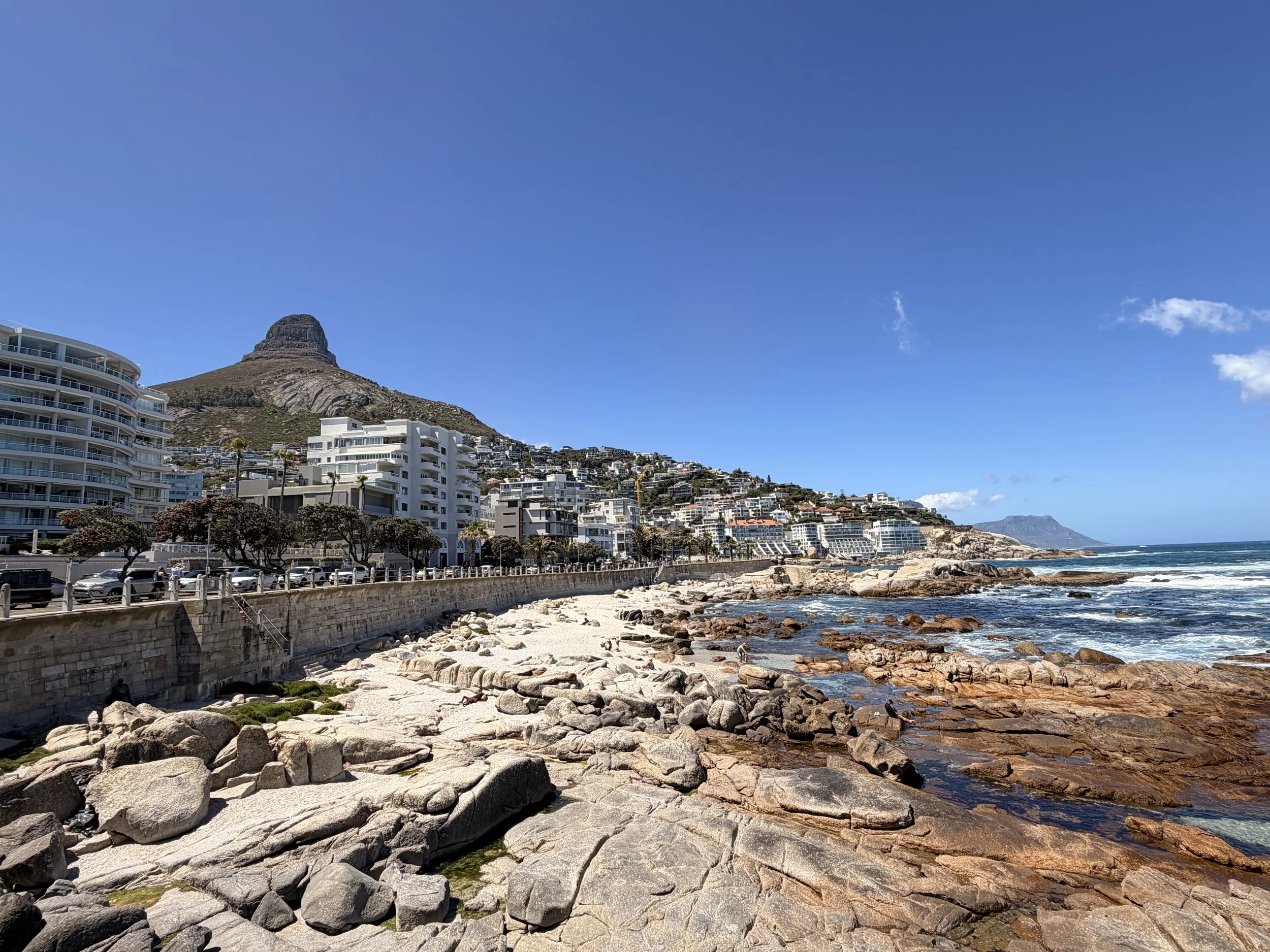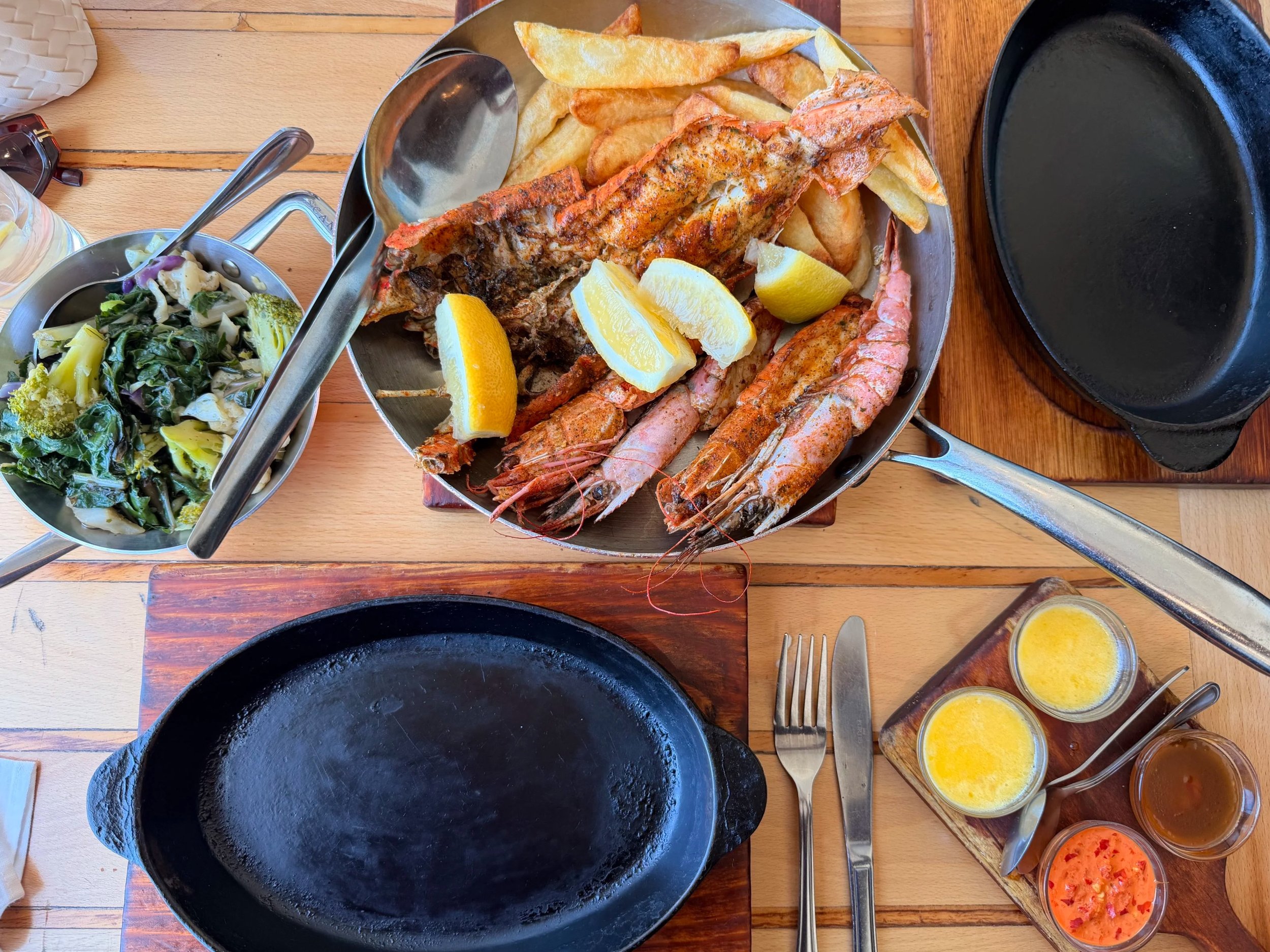 The views walking next to the ocean were spectacular - so much so that we somehow managed to walk almost 3 miles to the Camps Bay neighborhood and stopped for lunch at a place called “Codfather”. The concept of this restaurant was quite unique. The chef comes to your table, invites you over to the display counter where he shows you each type of fresh fish & seafood they have on that day, then you get to decide what you want & how much, then it will be prepared to order.