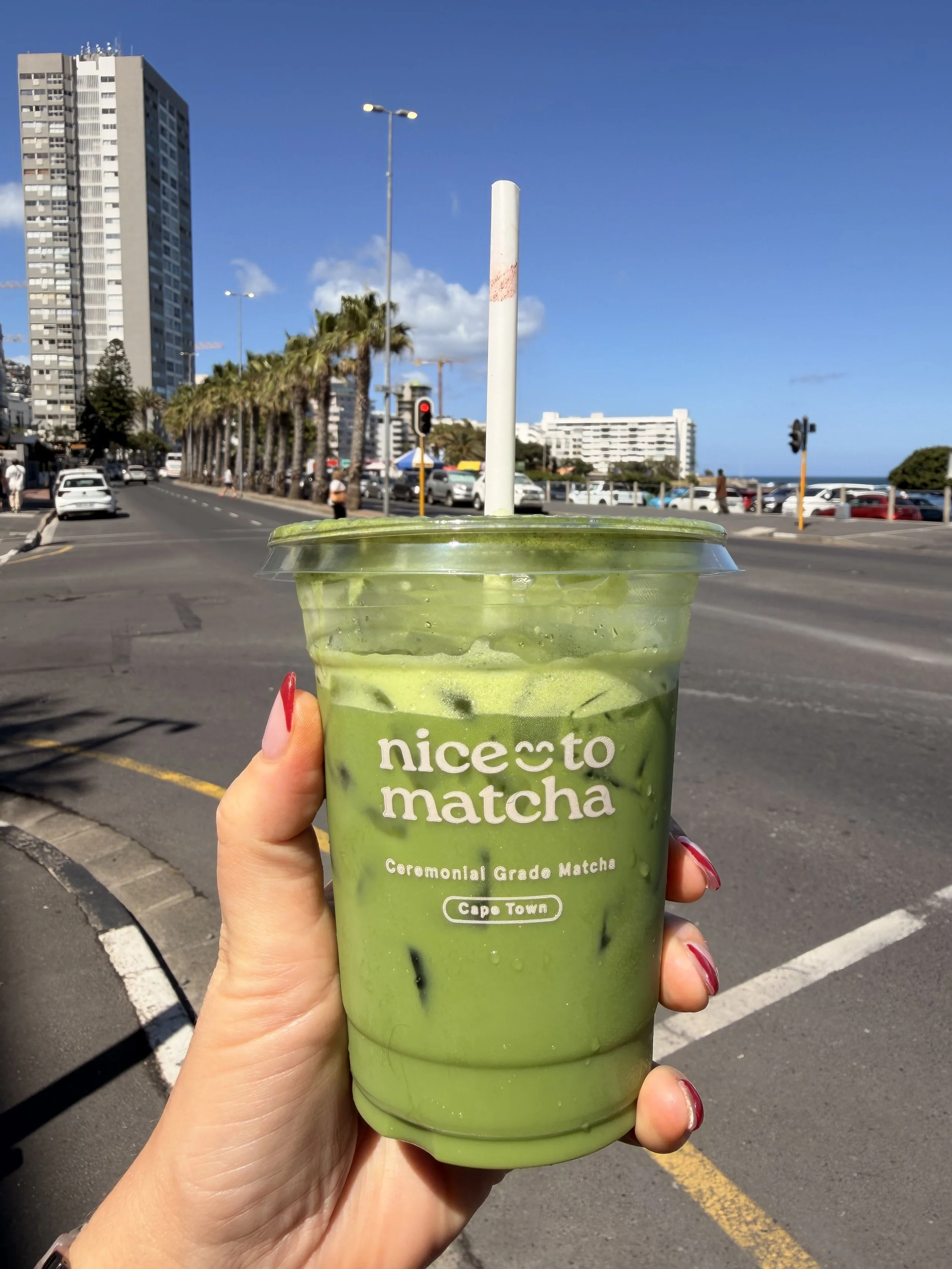 After our exhilarating helicopter ride, we ventured over to the Sea Point neighborhood because I found a matcha place I wanted to try called “Nice to Matcha”. The lovely lady working at the cashier recommend their most popular drink - the Vanilla Bean & Sea Salt and it was 10/10! I love that they use ceremonial grade matcha, it truly makes all the difference in quality and taste!