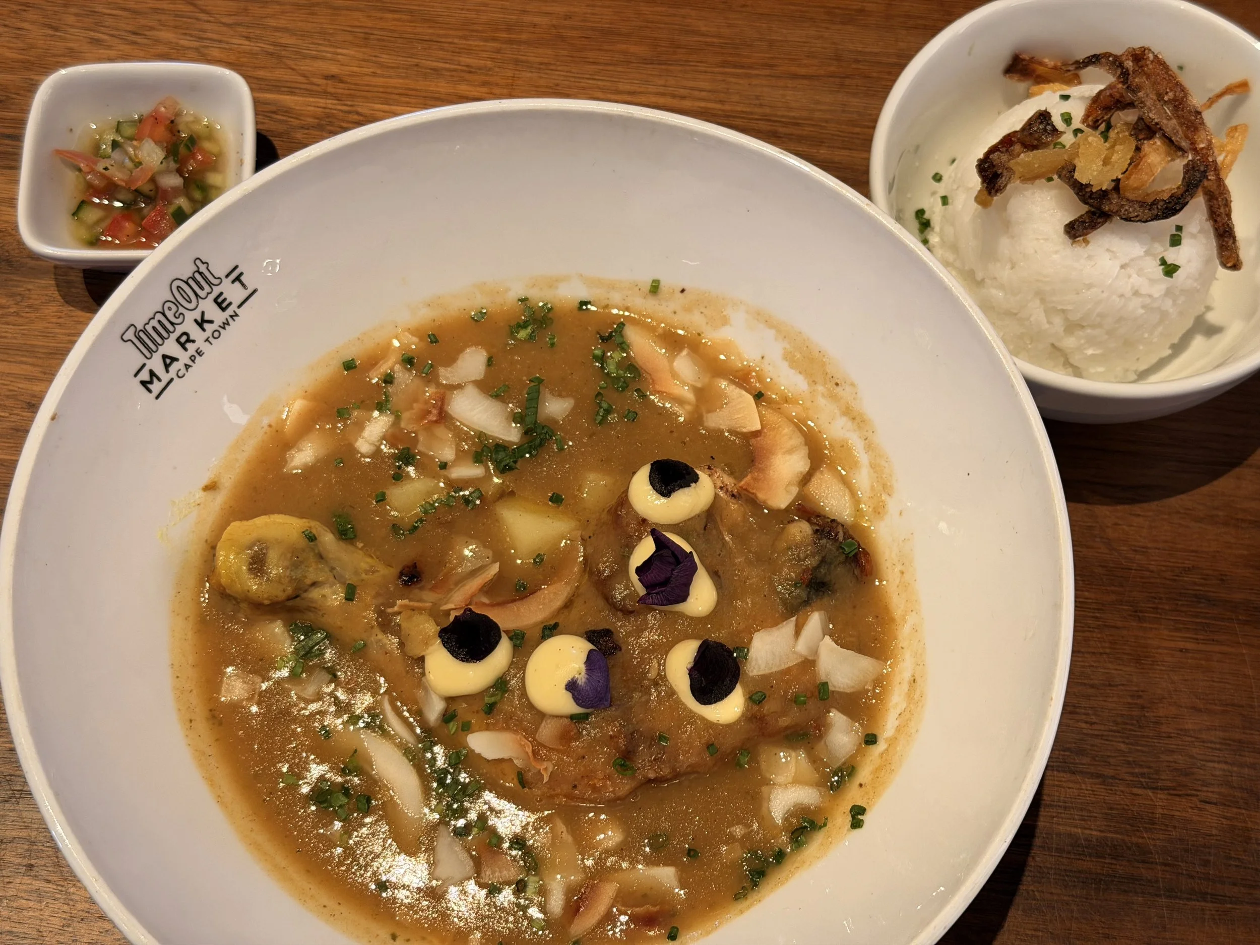 One place we frequented was the Time Out Market. It was a food hall that featured a variety of different cuisines including local Cape Malay flavors as well as Italian, Japanese & even Greek stalls. In fact, it was our first meal in Cape Town. I was quite excited to try my first authentic South African dish called “Bobotie”. It was so flavorful & comforting - described as sweet curried beef mince in egg custard, topped with a chickpea shard, homemade chutney & toasted coconut, which I found to be delicious.