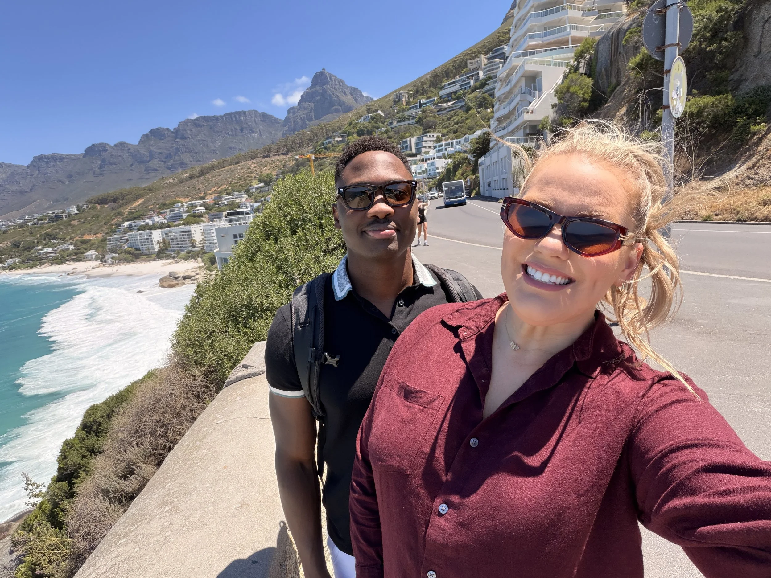 Also, I would like to note that we also were unaware until our lunch at Jake’s after our waitress informed us that the road is not always open. We were just lucky enough that Jake’s is located right outside the entrance to Chapman’s Peak Drive and were finished eating just as the toll road was about to open, so we were one of the very first cars to begin the drive. It was nice that there are several places to pull over and take photos along the way. The last photo I posted with Fred & I truly looks like a green screen because of how beautiful the landscape is behind us. We were in constant awe the entire drive.