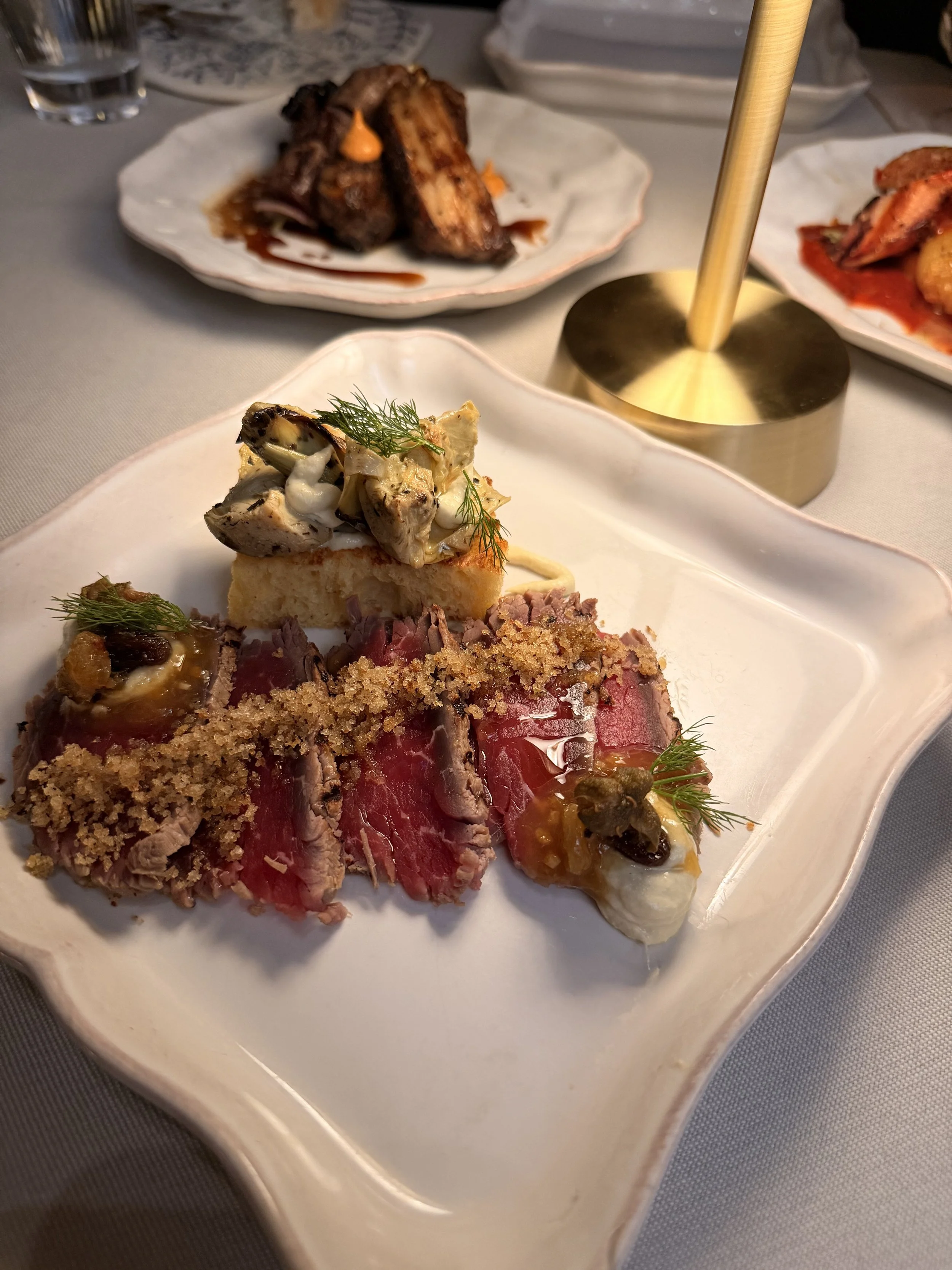 I saw that the menu included Springbok carpaccio as an appetizer so we ordered that to start. The meat was tender and flavorful, and I was excited that we were able to check off 2 dishes from my list of foods on our very first day!